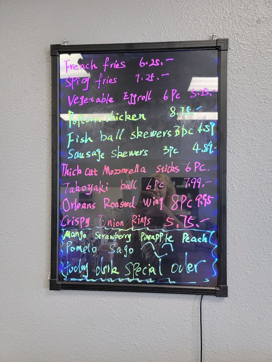 This menu is clearly curated to satisfy a wide spectrum of tastes, from creamy milk teas to fresh fruit infusions and crispy, flavorful snacks, all under one roof, making it a memorable stop for casual diners and boba enthusiasts alike.